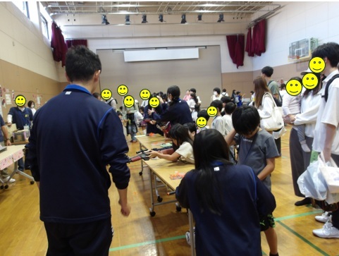 同時開催したキラキラひろばの「わくわくおみせやさん」では、高校生・小学生ボランティアも参加していて、店員さんとお客さんの