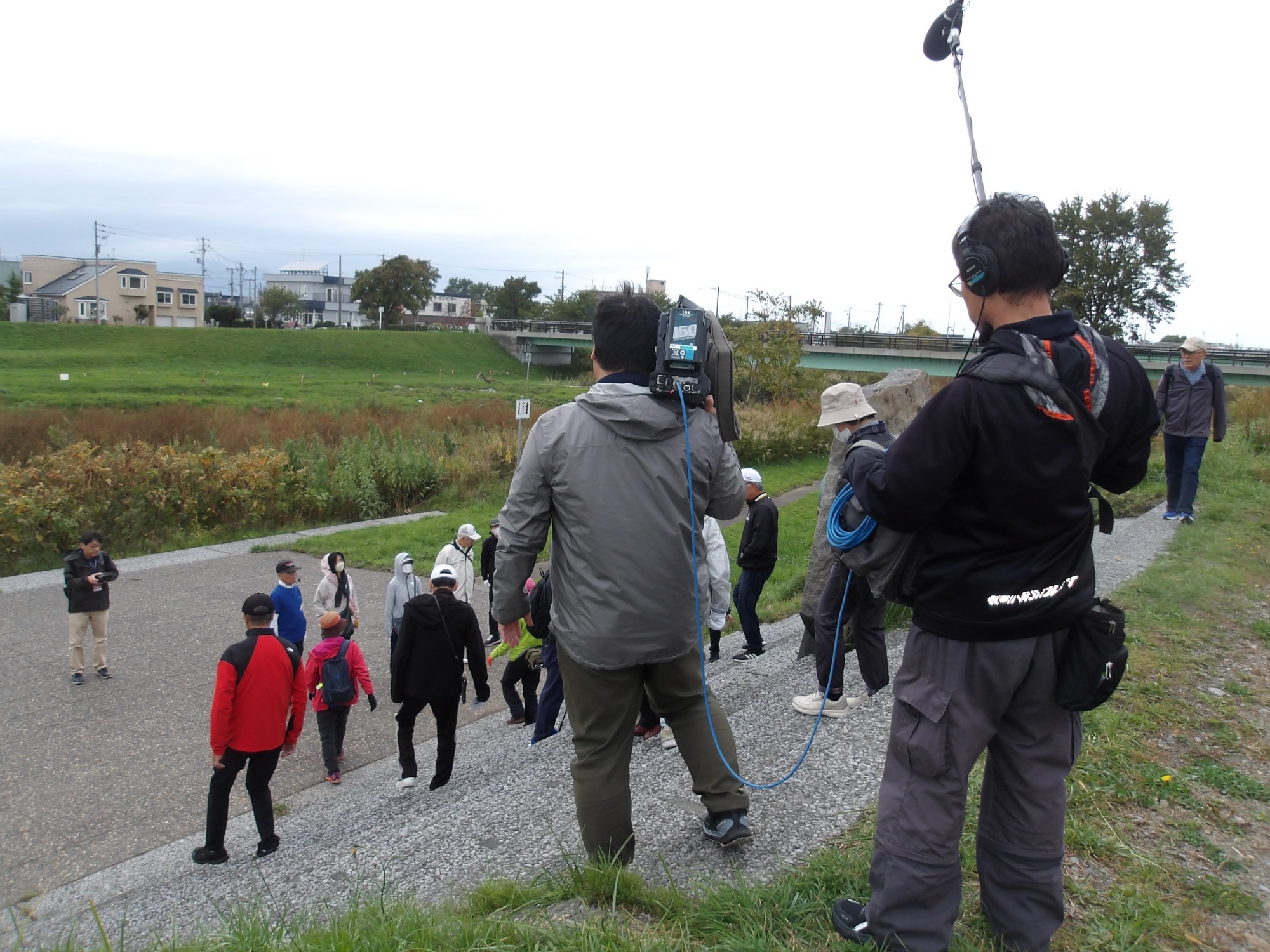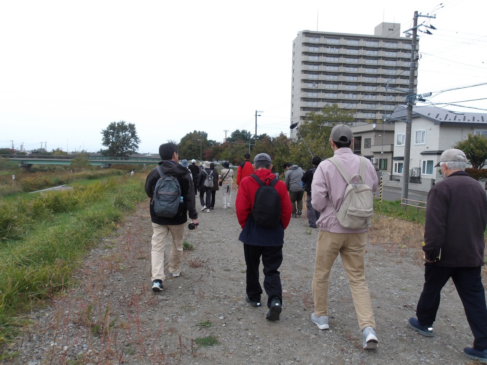 風が冷たい中、みんなで元気に歩きました。途中、厚別区と白石区に川を挟んで向かい合わせにある「彦星」と「織姫」の石を