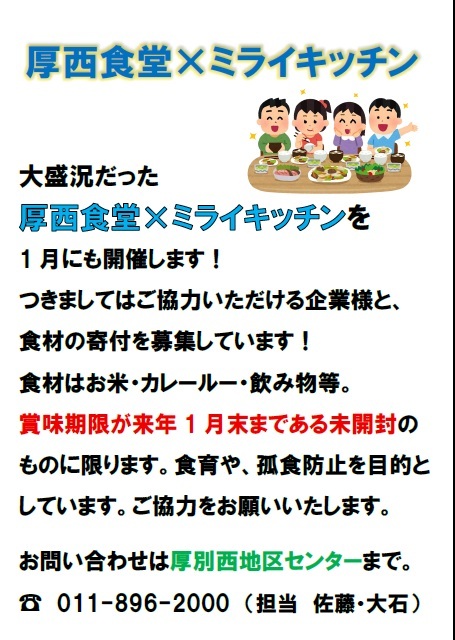 いつも厚別西地区センターをご利用いただきありがとうございます。